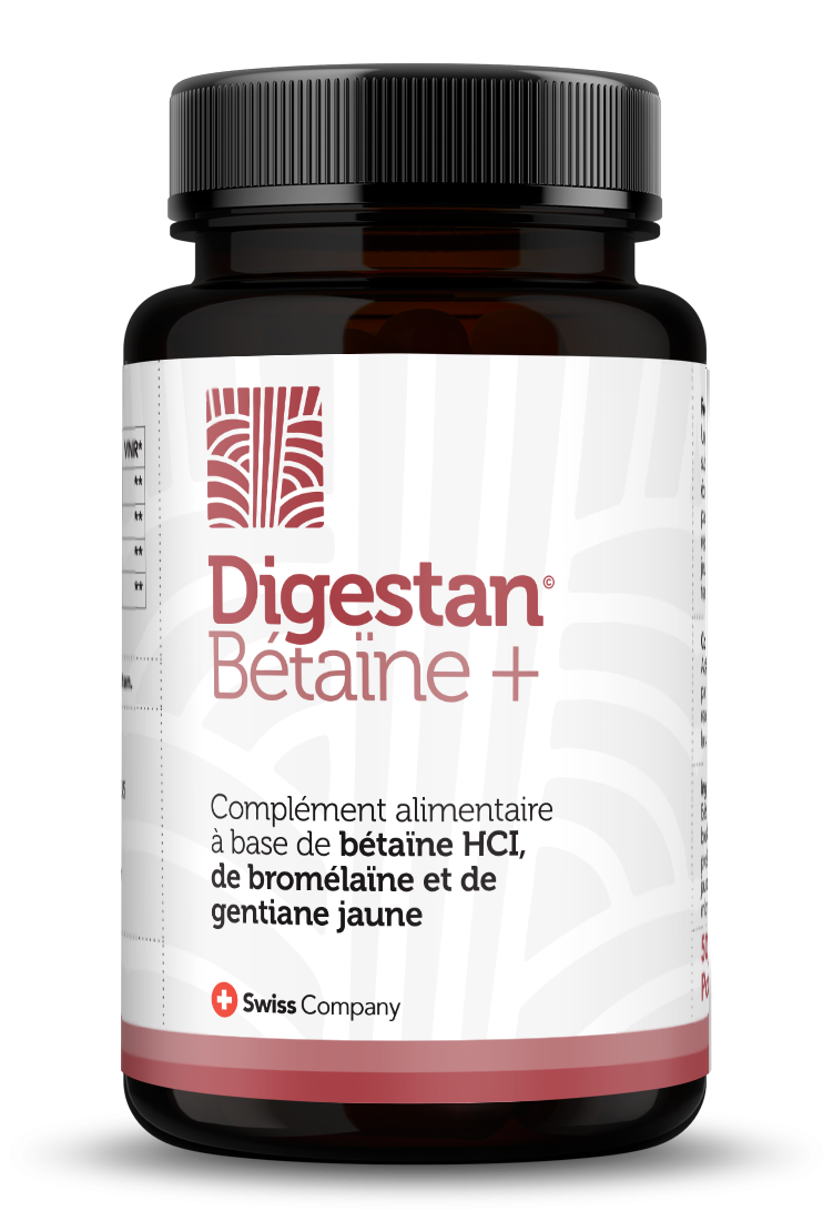 DIGESTAN® Bétaïne est un complément alimentaire formulé pour améliorer et soutenir la digestion haute. Son efficacité repose sur une synergie d’ingrédients naturels, ayant chacun un rôle spécifique dans le soutien des fonctions digestives.